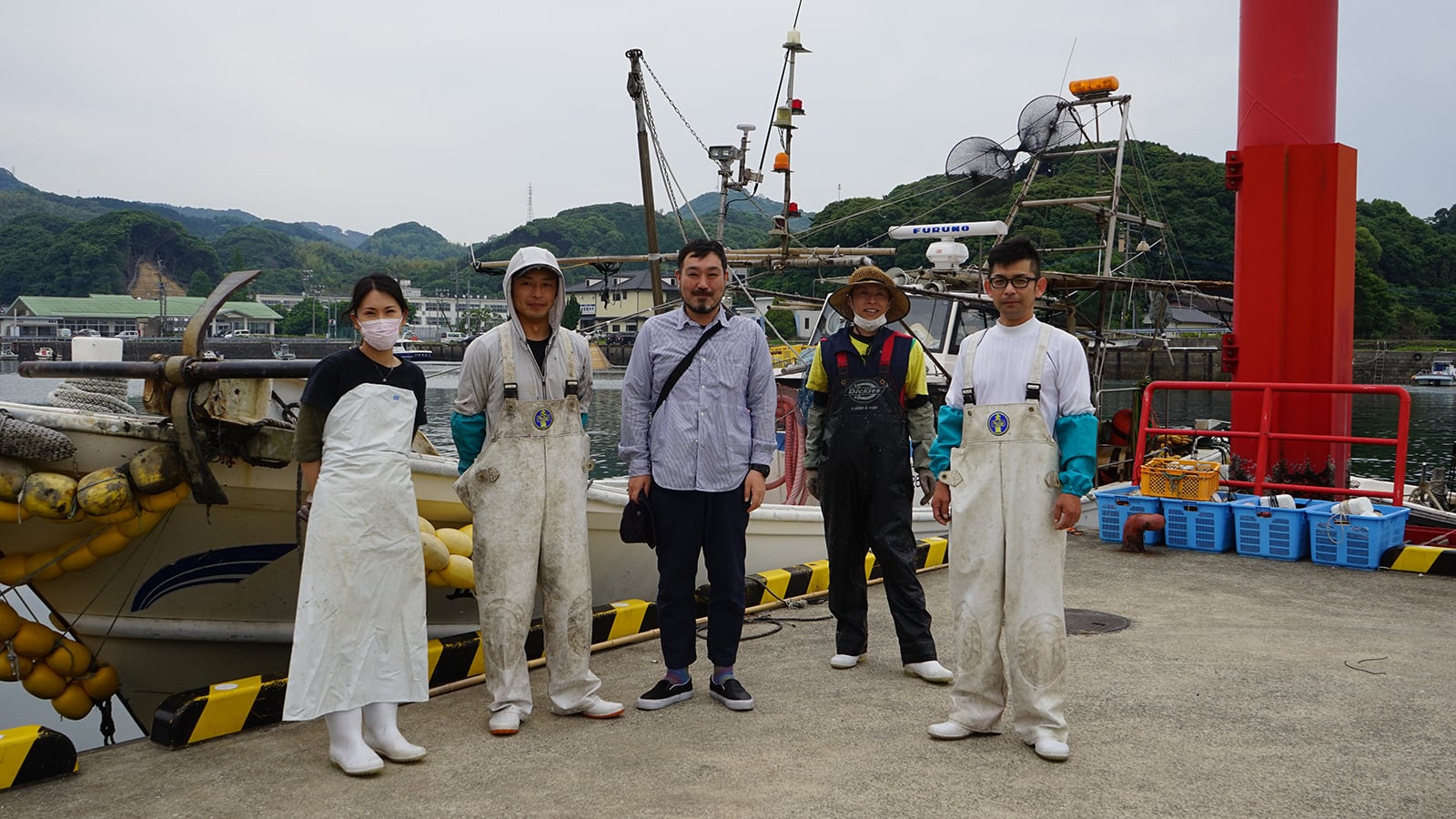 『煮干いりこ屋』店長の原一也(中央)と「しみず水産」の皆さん
